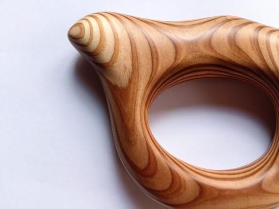 屋久島の杉は、肌触りがよく軽い⽊。まだ、⼒のない⾚ちゃんでも持ちやすく、